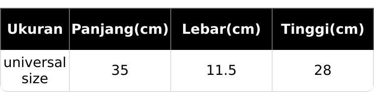 Dimensi tas: Panjang 30 cm x Lebar 9 cm x Tinggi 28 cm.